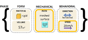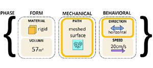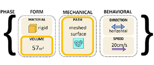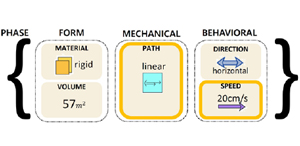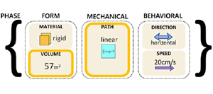 Movements consist of formal characteristics, and it has been continuously attempted to distinguish them. Young et al. (2005) hypothesised that movements would enrich product behavior and developed a movement language, classifying product movements into Path, Direction, Volume, and Speed. Parkes and Ishii (2009) emphasised the potential of movements as a design language, advocating the need for tools to conceptualize physical transformations. They argued that a movement comprises several phases, which were analysed using Material, Mechanical, and Behavioural variables. Jeon and Jung (2021) proposed an analysis model by integrating the movement components, as illustrated in Fig. 1, based on the above two studies by Young et al. (2005) and Parkes and Ishii (2009) and the definition of movement.