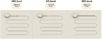 Speed was selected as the primary variable, as it is easily controllable in commercial products and produces noticeable visual changes. Videos capturing the movements of these products at low speed (50%), basic speed (100%), and high speed (300%) were used as experimental stimuli, ensuring that participants could clearly perceive the speed differences. The high-speed setting of 300% was chosen based on the need for a clear perceptual contrast with the baseline speed of 100%. This setting was informed by findings in perceptual psychology, emphasizing the importance of strong and distinct stimuli for reliable user responses (Frontiers in Psychology, 2017)