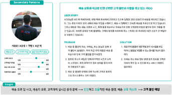 페르소나 B는 배송 오류나 사고로 인한 고객 불만 및 빈번한 마찰을 주요 과제로 경험하고 있다. 고객 클레임으로 발생하는 정신적 스트레스를 완화하기 위해, AI 기반 고객 응대 시스템과 자동화된 고객 지원 솔루션의 도입 필요성이 도출되었다. 이러한 솔루션은 고객 응대 단계에서 발생하는 심리적 부담을 줄이는 데 중요한 역할을 할 것으로 평가되었다.
