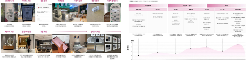 연구방법 문헌조사와 기업수요 반영을 통하여 현실적인 혁신의 목표와 방향성을 수립하고, 기반조사를 통하여 16개 항목의 유효 기회영역을 도출하였다. 이후 현장조사와 MZ세대 고객 대상의 설문조사 및 심층인터뷰를 진행하여 각 단계별 기회영역에 대한 핵심니즈를 도출하고, 이를 반영하여 새로운 고객접점(NTP)을 위한 제품서비스시스템(PSS) 디자인을 제안하였다.
