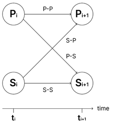 다학제 협업 환경에서 참여자들의 발언이 상호작용하며 발전하는 양상을 분석하기 위해, 공진화 모델을 적용하였다. 사용된 공진화 모델은 선행 연구(Gero et al., 2002)를 기반으로 설계되었으며(Table 3), 문제 공간과 해결책 공간 간의 상호작용을 정량적으로 분석하기 위해 P와 S의 전이를 정의하였다.